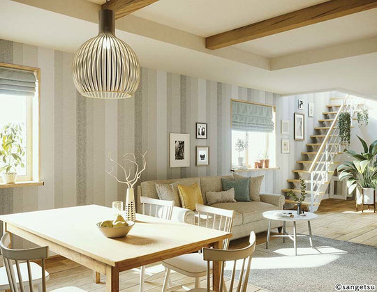デザイン性の高いクロスやファブリック、家具を使うことで、インパクトのある個性的な楽しい空間が作れます。思い切った大柄も、全体の色調を統一することでくつろげるお部屋となります。壁の一部のクロスを柄物などに変えるアクセントクロスを使ったり、カーテンの柄を変えることで簡単にイメージチェンジができます。