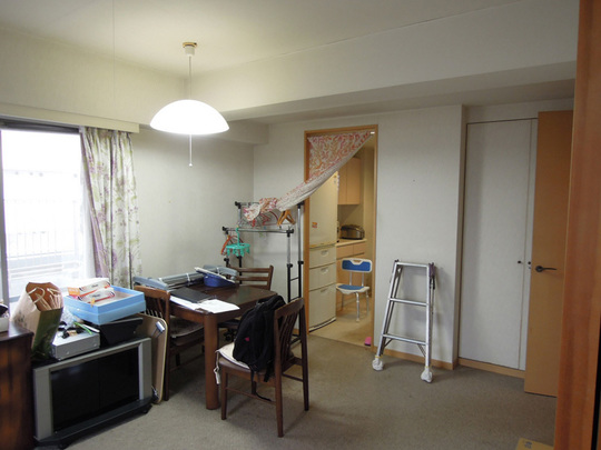 駅近にもかかわらず、ルーフバルコニーのある眺めの良いお住まいの長所を活かせるように、細かなしきりの壁を少なくし、開放感のあるスペースになるように工夫しました。また収納の出し入れ口の位置を変えたり、ドアを引き戸にするなど大きく間取り変更しなくても、日々の使い勝手がよくなるようなご提案をしました。また化粧張りフィルムを使い、既存の家具を低コストで美しくリフォームしました。