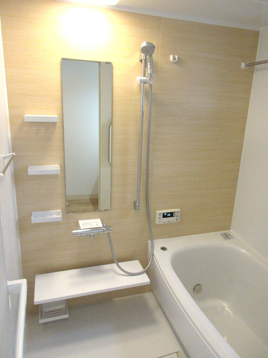 新しいユニットバスは、高級感が漂います。浴室が縦5cm、横10cm広くなりました。