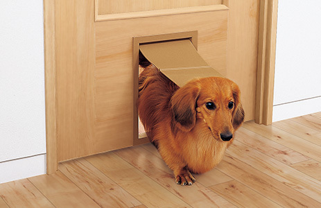 小さなくぐり戸つきのドアで、ペットが自由に行き来できます。