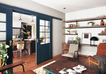 開き戸から引き戸にする場合は、引込みスペースが必要です。前の項でご紹介したアウトセット納まりの引き戸ならば、壁を解体することがないため、比較的簡単に引き戸にリフォームできます。