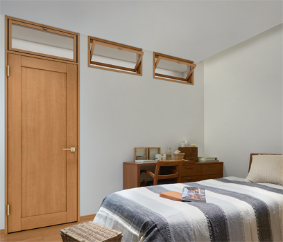 窓がひとつしかない部屋にランマ付きドアを付けることで、ドアを開けずに換気ができます。