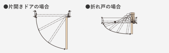 設置する場所の周囲の開閉スペースが狭い時には、引き戸や折れ戸に変えることで使い勝手がよくなる場合もあります。引き戸にする場合には、「控え壁」のスペースが必要です。