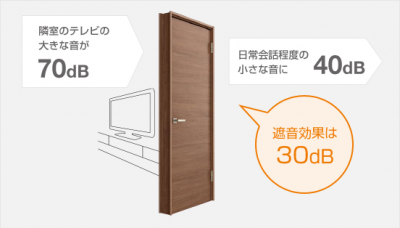 ピアノなどの楽器やホームシアターなど大きな音を使う部屋には遮音機能を高めたドアをおすすめします。このドアを付けることで、大きなテレビの音が、日常会話程度の音に軽減されます。
