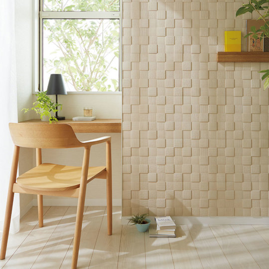 織物クロスは、ビニールクロスが出まわる以前によく使用されていました。レーヨン、絹、麻など天然素材や化学繊維による不織布などで作られるクロスです。 様々な織り方で表情も違い、高級感、重厚感があり、通気性が良い反面、高価であり、ほこりがつきやすく、キッチンなど、火気のある部屋には使えません。