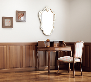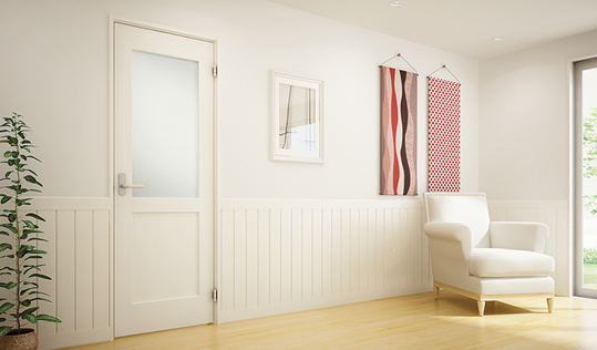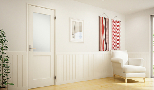 狭い部屋で使うと圧迫感があるので、リビングや廊下などによく使われます。腰壁パネルの色選びのポイントは、床の色よりも明るい色を、腰壁より上の壁や天井の色は、腰壁パネルよりも明るい白などにすると開放感が出ます。板の幅やデザインはいろいろあります。