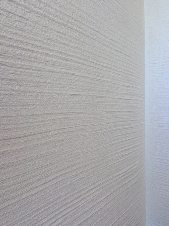 ナノサイズ(1ミリの100万分の1)の小さな孔があり、室内の湿気を吸収・放出することで、調湿することができる壁です。珪藻土に特長は似ていますが、珪藻土より約6倍の調湿力、調湿壁紙より約25倍の消臭性があると言われています。旧エコカラットから進化して、現在はエコカラットプラスとなっています。