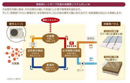 電気ヒートポンプ式温水床暖房