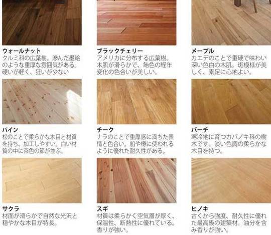 樹の種類によって色や表情、硬さが違います。