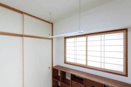 リビングの一角は襖を開けると和室になっています。お子様のよい遊びスペースになっています。子育てにこのような和室がとても便利とのことです。