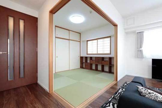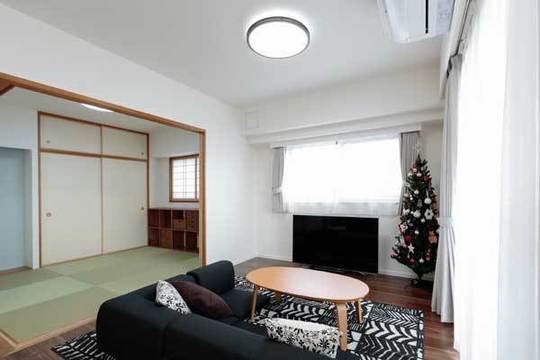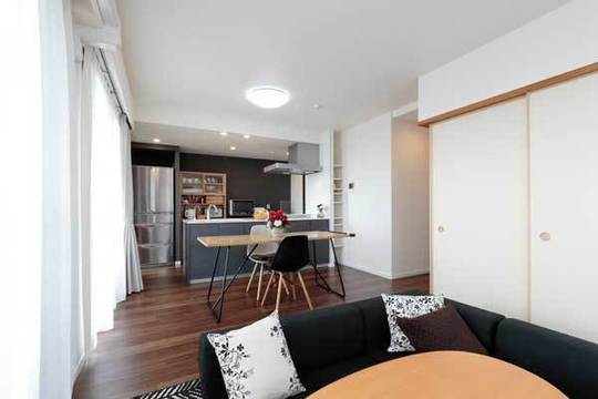 住み慣れた深大寺界隈に物件を探していたところ、中古マンションならば、自由にリフォームして新築より広く住めると思い、この見晴らしのよいマンションがみつかりました。グッドスマイルハウスさんは、HPに好感が持て、また地元なので今後も相談しやすいのではないかと思いお願いしました。LDKの間取りを使いやすく提案していただいたり、収納の工夫をするなど、いろいろと親切に相談にのっていただきました。職人さんも丁寧でした。リモートワークが多い現在ですが、家で毎日快適に過せています。子ども達も、住む地域は変わらず、新しい家になりとても喜んでいます。