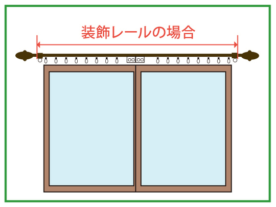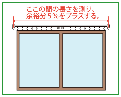 いまお使いのカーテンを測るのではなく、カーテンレールを基準に測ります。