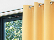 ハトメの穴をポールに通して吊るすシンプルでトレンド感のあるスタイル。