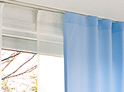 機能性レールは、設置する場所に合わせた形状や、操作性、室内環境を整える機能を重視し、レールが目立たないようにカーテンを吊るすのが一般的です。装飾性が無くシンプルで機能性を重視した、一般的なカーテンレールでカーテンの操作がスムーズです。
