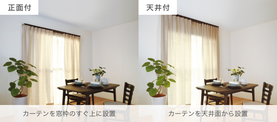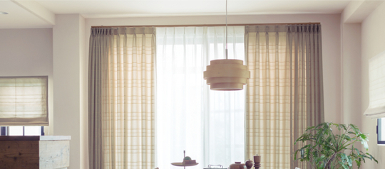 ひだの取り方、カーテンレールへの取り付け方法により、カーテンの表情が変わります。