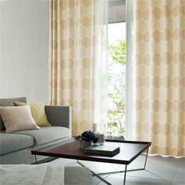一般的に既成カーテンは1.5倍程度で、オーダーカーテンはたっぷりと2倍程度の生地を使うため、高級感が感じられます。