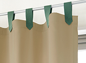 共生地またはカラータブをポールに通して吊る、カジュアルで可愛らしいスタイル。