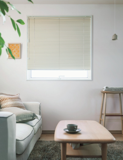 ブラインドは、窓の内側に設置し、風を通しながら外部の視線や日差しを遮ることができます。またシャープな印象がお部屋をすっきりと美しく見せます。