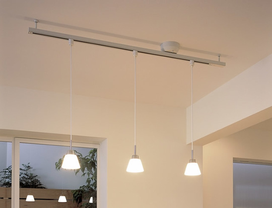 レールの長さはお好みにできます。普通1本のレールに1500Wまでの照明器具が取り付けられます。複数個吊るす場合には、合計W数を確かめましょう。