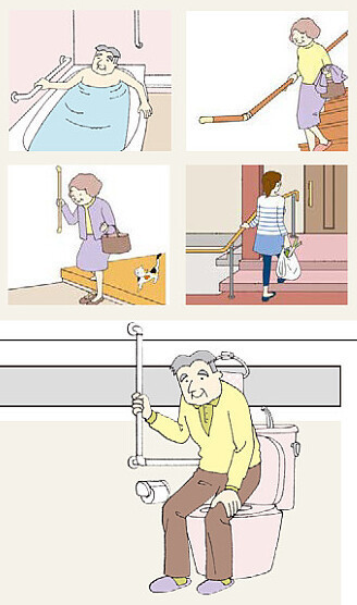 手すりは、高齢者の転倒、転落の事故防止に役立ちます。足腰の筋力の衰えをサポートし、家の中での動きをスムースにします。また介助者の負担を軽減し、介護される人が自身でできることを増やします。安全のために、早めのリフォームをおすすめします。