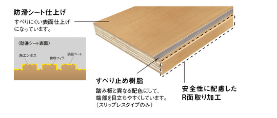 既存の階段が老朽化のために傷んでいたり、滑りやすい場合、今ある階段に新しい床材を重ね張りして安全な階段にリフォームすることができます。滑り止め加工された木材、滑りにくいカーペット、コルクなどがあります。