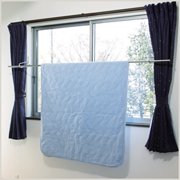 窓上の壁に取り付け、手動で竿掛けと竿を出します。