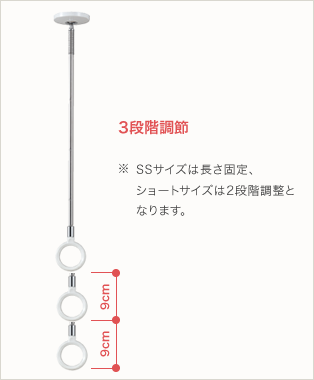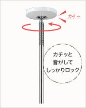 部材がシンプルで、スマートに使えます。ポールの長さは、天井高に合わせてサイズ選ぶことができ、さらに使いやすい長さに調節できます。