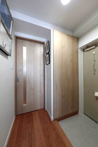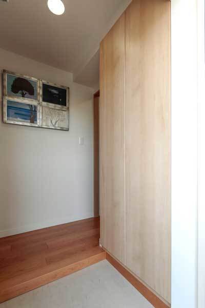 収納力の大きい玄関収納に替えました。フロアタイルも新しくなり、明るい玄関になりました。