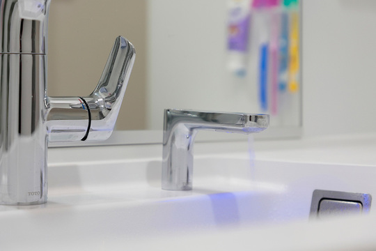 お子様3人と一緒にゆっくり入れるラウンド型の大きめの浴槽を選びました。以前よりまたぎが低くなり、また手前内側には腰掛けがついているので、一番小さい3歳のお子様でも一人で浴槽に入れるようになりました。