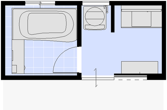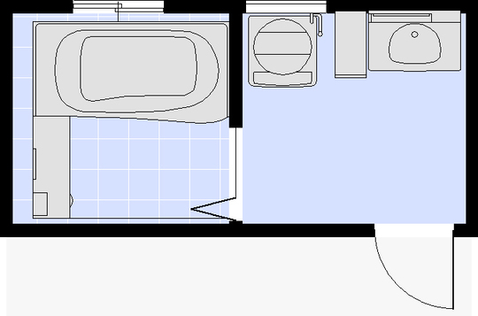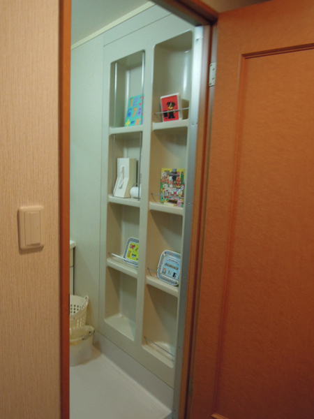 右手奥にあったドアの位置を浴室入口に変更し、引き戸にしたことで、デッドスペースがなくなり、収納家具を置くスペースができました。