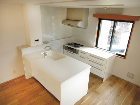 | 工事内容 | キッチン・ユニットバス・洗面化粧台・トイレ交換ガス衣類乾燥機・床暖房設置、フローリング・クロス張替え室内収納造作、洗面所間取り変更 |