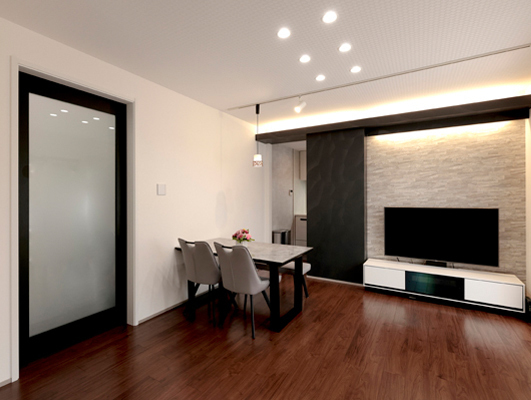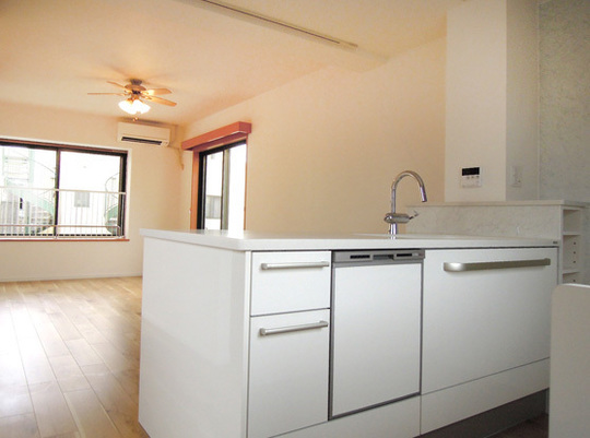 半年前に、この家をリフォームすることを前提に中古で購入し、しばらく住んで落ち着いてから、ゆっくり検討してリフォームができたのでよかったです。グッドスマイルハウスさんはHPでみつけ、さまざまなリフォームを手がけられていて信頼できそうなので、はじめからここでお願いしようと思いました。実際、依頼してからは細かく打ち合わせてもらい、職人さんも丁寧で、しっかりと工事をしてもらうことができました。鉄筋コンクリート造なので、床暖房ができるかなど心配なこともありましたが、すべてうまくいき、間取り、設備、内装ともに気に入っています。子ども達と楽しくクッキングができるようになりました。