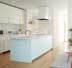 上部の壁を取り払い、サンルームまで見渡せる明るいキッチンになりました。コンロ脇は、ネイビーの焼き物風タイルを貼り、機能的でお部屋のアクセントとなる壁になっています。