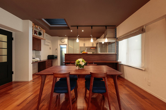 長年、保護犬や保護猫を引き取り、大切にお世話されているI様。LDKを動物達も心やすらぐ、明るい広々としたサンルームにつながるリビングと使いやすいダイニングキッチンにリフォームしました。緑いっぱいのお庭が、お部屋の中までつながるような一日中居心地のよいスペースが生まれました。長い間大切にされてきた昭和時代の優れた建築がお手入れをすることで、よりいっそう輝きを増したようです。