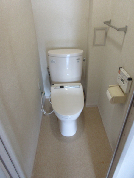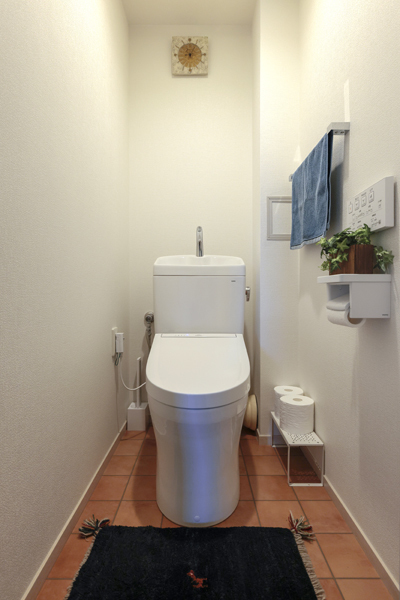テラコッタ風の床がお住まい全体の雰囲気にあっています。節水型トイレを設置しました。(TOTOピュアレストQR)