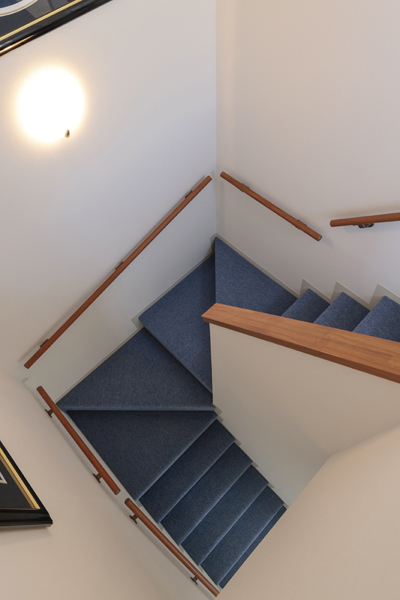 上階に続く階段。壁にはラッセンの絵が飾られて爽やかです。
