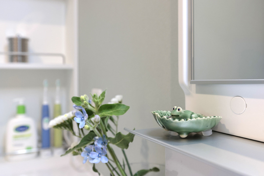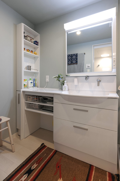 もとは、突き当たりの壁側に洗面台が設置されていましたが、今回位置を変更し、スペースがすっきりと使えるようになりました。