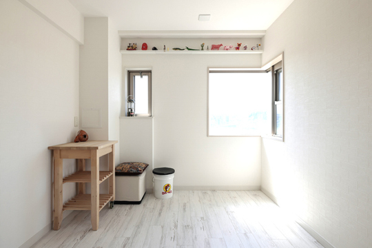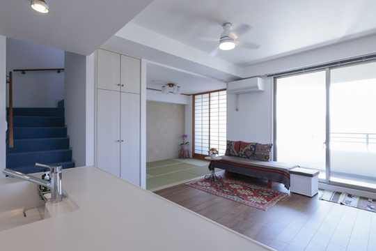 もとはリビングとの間に仕切り戸がありましたが、戸をなくし開放的な空間にしました。