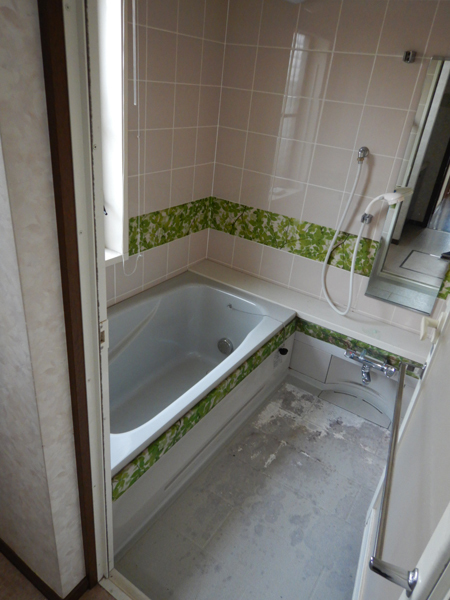 床が冷たいタイル張りの浴室で、断熱材が入っていないため寒いお風呂でした。