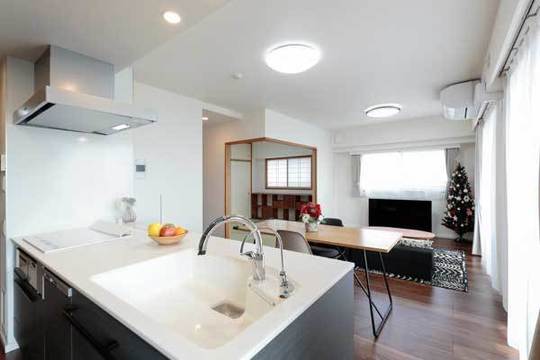 | 工事内容 | 壁解体、キッチン組立、電気工事、給水、給湯、排水配管工事、ガス工事、内装工事、床フローリング、木工事 |