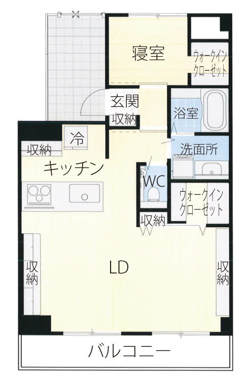 キッチンとお揃いの収納も設置