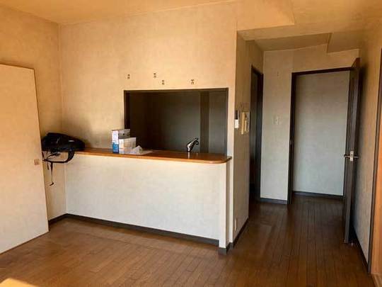 もとはキッチンとリビングの間に収納付きの壁がありました。
