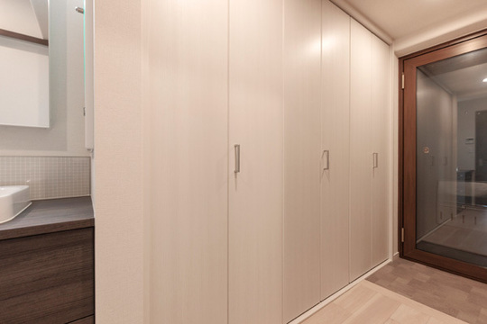 玄関近くにも大型クローゼットをつけました。