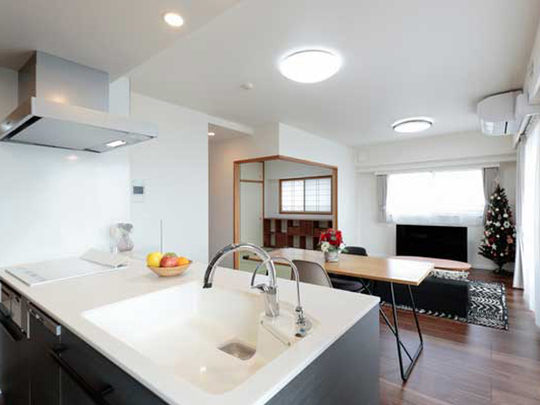 | 工事内容 | 間取り変更、洋室改装、シャワールーム・トイレ・洗面化粧台交換設置、クロス・床張替、断熱窓、ドア設置、収納造作照明・建具交換、カーテン設置、壁掛けテレビ設備設置 |