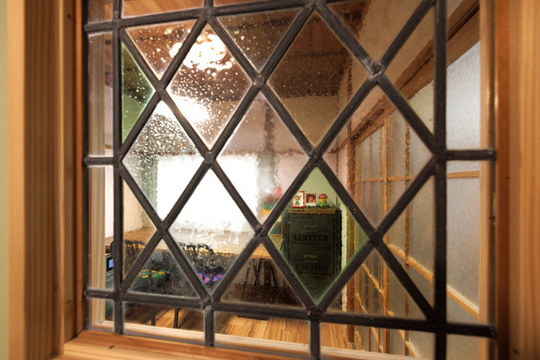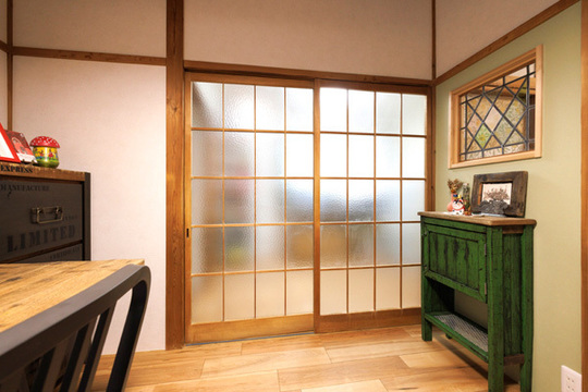 工事が完成するにつれ、考えていた以上に居心地の良い部屋になり、倉庫というよりも、第2のリビングとして使いたくなりました。味わいのあるガラス戸や古い柱などはなるべく残し、アンティークがしっくりと納まる部屋となりました。大事にしまってあったステンドグラスも壁に取付けていただき、アンティークが息を吹き返したようです。気分転換にここで過ごす時間が、今では私たちの楽しみとなっています。またアンティーク集めにはずみがつきそうです。