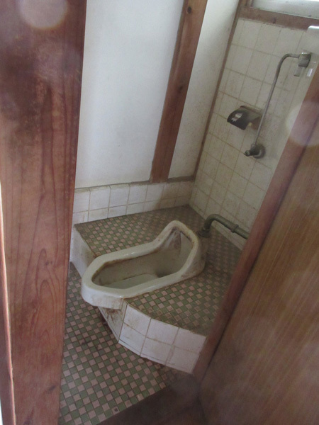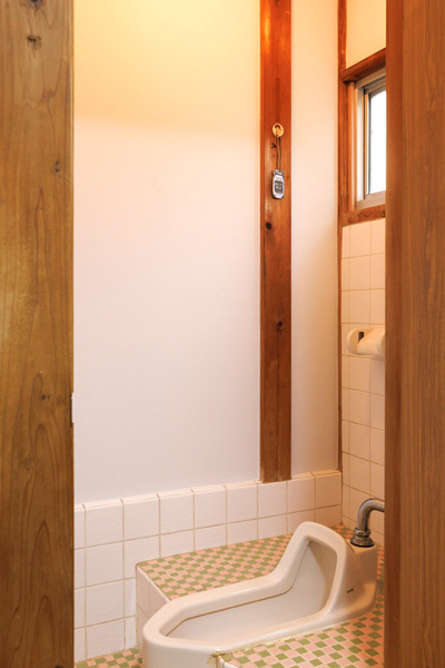 レトロタイルがかわいい、懐かしい和式トイレ。セカンドハウスなので、今回はきれいにクリーニングをしてそのまま残しました。