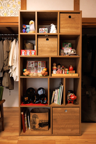 奥様は、イラストレーターのヒグチユウコさんの大ファン。たくさんのかわいいコレクションをお部屋のあちらこちらで楽しめます。