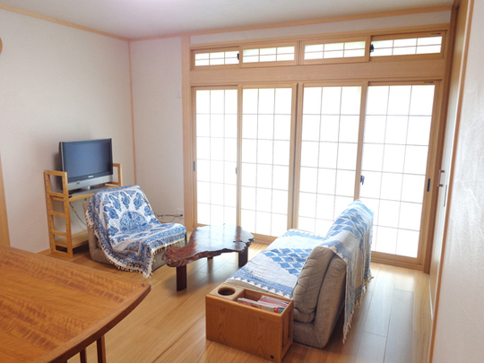 セカンドハウスなので、キッチンはつけずに、玄関前のもとキッチンの部屋はフリースペースにしました。