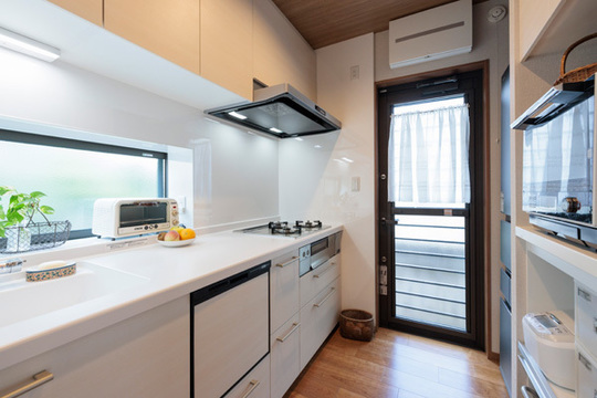 | 商 品 | キッチン(TOTOミッテ)、フローリング(イクタ 銘木フロアラスティック)、クロス(サンゲツ) |
