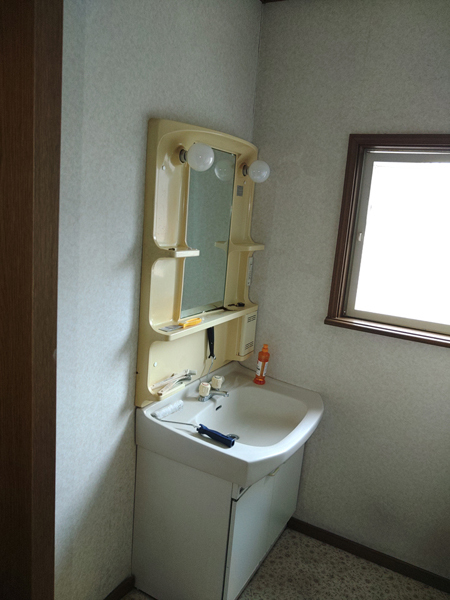 | 工事内容 | 解体、搬出処分、洗面化粧台組立、取付け、水道工事、壁クロス・床クッションフロア張替え |
